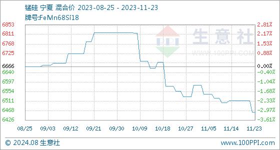 11月23日生意社锰硅基准价为6461.67元/吨