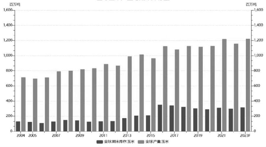 从全球玉米供需情况看,美国农业部(USDA)11月报告显示,全球2023/2024年度玉米产量预估为12.2079亿吨,10月预估为12.1447亿吨;期末库存预估为3.1499亿吨,10月预估为3.124亿吨。全球玉米产量和期末库存均小幅上调,主要是USDA在本次报告中上调了美玉米单产和产量。纵向对比来看,本年度全球产量来到历史最高位,期末库存也回升至五年来最高。另外,美玉米收割接近尾声,国际市场供应压力加大。从进口价格来看,截至11月22日,今年12月至明年5月,美国玉米进口到岸完税价区间为2210—2290元/吨,明显低于国内广东港口价格,国际市场价格优势较好。这利好国内进口积极性,潜在供应压力增加,价格有向国际价格靠拢的倾向。