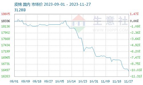 11月27日中国棉花指数3128B级均价16481元/吨,较上一日下跌88元/吨。
