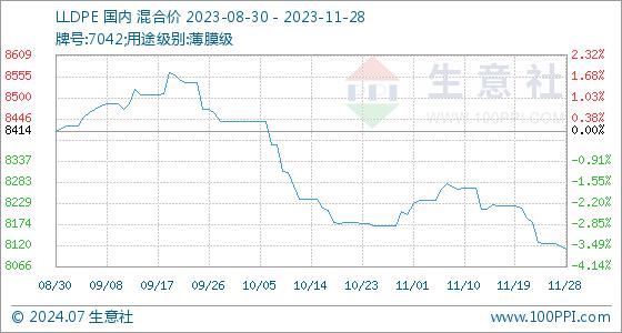 11月28日生意社LLDPE基准价为8118.57元/吨