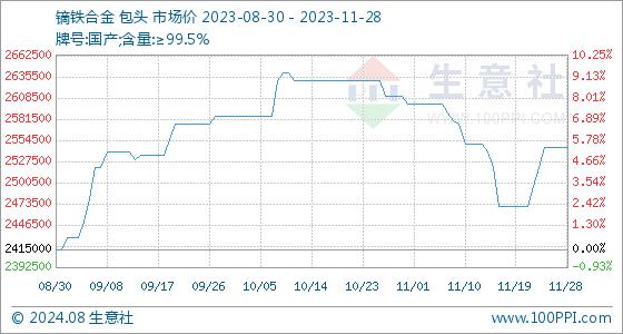 11月28日生意社镝铁合金基准价为2545000.00元/吨