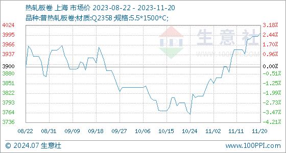 11月20日生意社热轧板卷基准价为3992.00元/吨