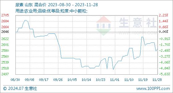 11月28日,生意社尿素基准价为2580.00元/吨,与本月初(2515.00元/吨)相比,上涨了2.58%。