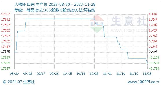 11月28日生意社人棉纱基准价为17325.00元/吨
