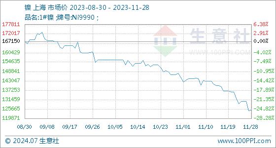 11月28日生意社镍基准价为124700.00元/吨