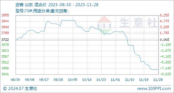 11月28日生意社沥青基准价为3447.67元/吨