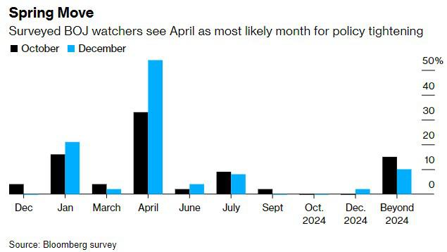 超过三分之二的受访经济学家预计日本央行将在4月前取消负利率,52名受访经济学家中有一半表示将在4月取消负利率。在10月份进行的上一次调查中,29%的人认为这一举措将在4月份实施。