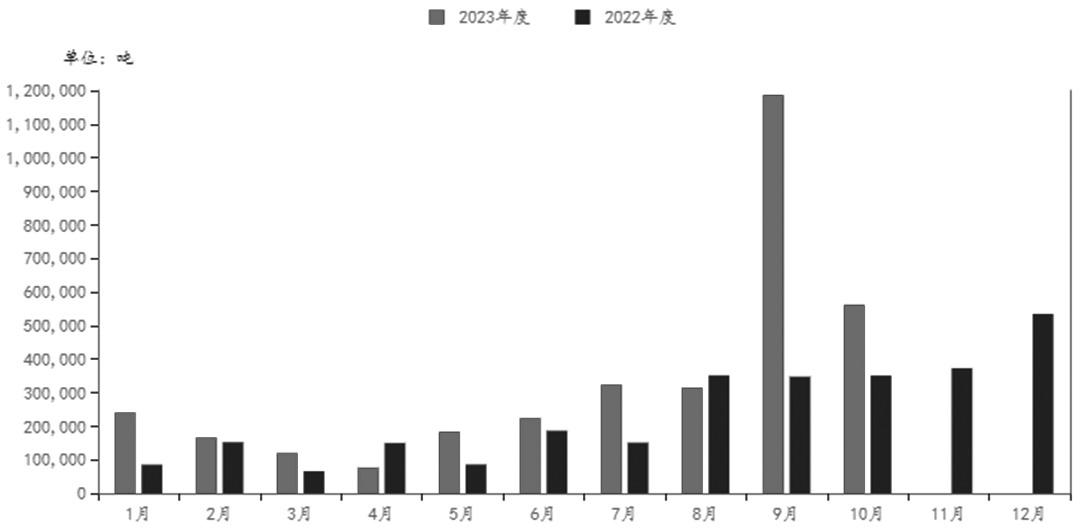 数据显示,10月我国尿素出口量为56.16万吨,环比减少52.67%,出口均价为369.28美元/吨,环比增加0.49%。1—10月我国尿素累计出口量为339.54万吨,较去年同期增加76.45%。11月尿素出口量在30万吨,环比大幅下降46.4%。虽然国内部分企业有少量对接印标出口货源,但基于保国内供应,出口量相对有限。