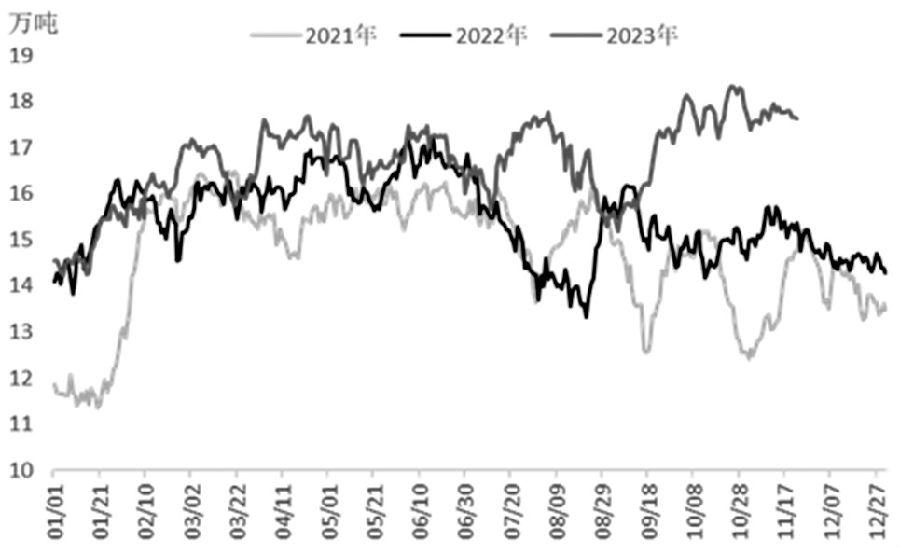图为尿素历年日产量对比