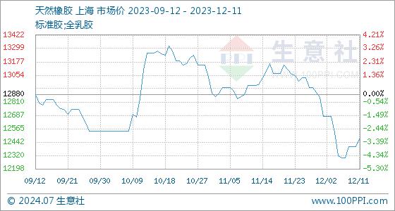 12月11日生意社天然橡胶基准价为12400.00元/吨