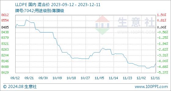 12月11日生意社LLDPE基准价为8090.00元/吨