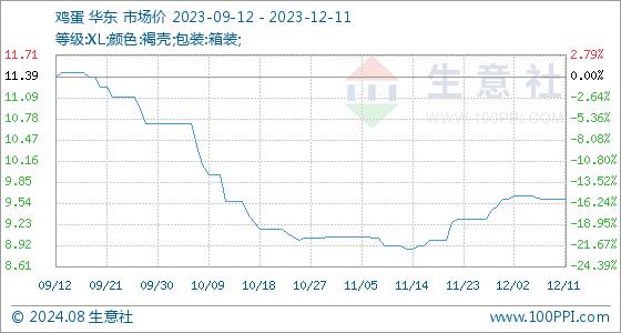 12月11日生意社鸡蛋基准价为9.59元/公斤
