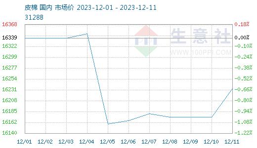 12月上旬,棉纺织市场供需基本面没有大的变化,新棉大量上市,而消费依旧较弱,棉价先跌后涨,期货上涨明显,现货方面,据生意社商品行情分析系统,12月11日3128B级皮棉现货价格在16233元/吨,较月初下跌0.65%。
