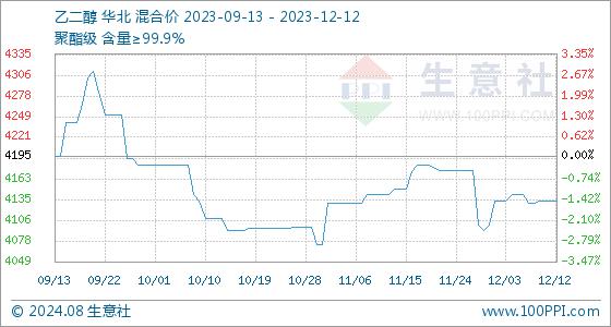 12月12日生意社乙二醇基准价为4133.33元/吨
