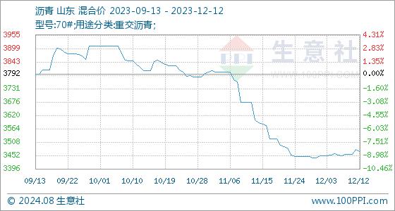 12月12日生意社沥青基准价为3477.67元/吨