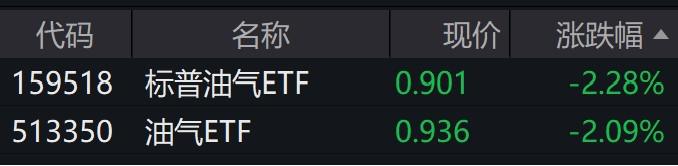 国际油价大幅走低,标普油气ETF、油气ETF跌超2%