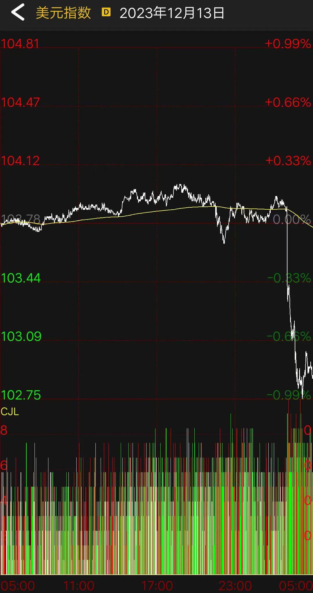 鲍威尔新闻发布会结束后,ICE美元指数一度跌超0.9%,最低至102.77,创11月30日以来新低。