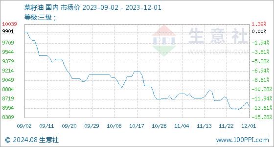 12月1日生意社菜籽油基准价为8663.33元/吨