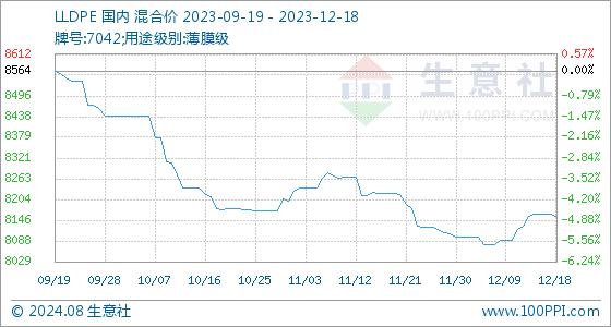 12月18日生意社LLDPE基准价为8164.29元/吨