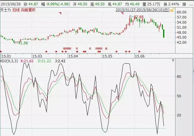 过去人们使用随机指标一般通过一个特定周期(常常是9天)内出现的最高价、最低价及最后一天的收盘价及这三者之间的比例关系,来计算最后一天的未成熟随机值,然而根据平滑移动平均线的方法来计算KDJ,往往随机性很大,其中J值可靠性最差,因为它敏感性太强,K值次之,D值稍稳定些。由于KD是从威廉指标中脱胎而来,因此它也具有威廉指标提示超买超卖现象的能力。