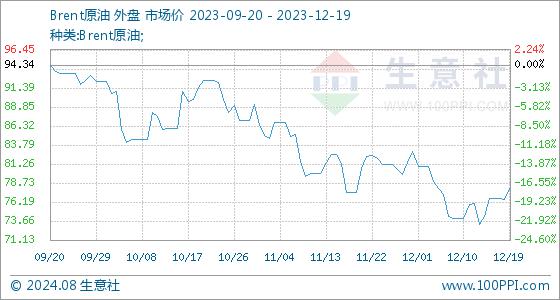 12月19日生意社Brent原油基准价为76.55美元/桶