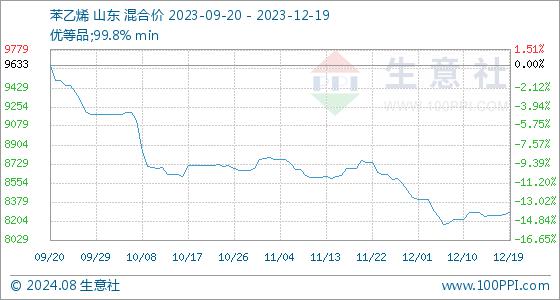 12月19日生意社苯乙烯基准价为8266.67元/吨