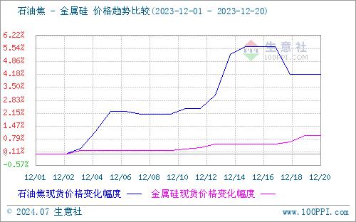需求端:截止12月14日,我国金属硅开工炉数364台,整体开炉率48.53%,环比减少11台。其中,新疆减少1台,云南减少5台,四川减6台。金属硅开炉数继续回落,西南地区开工率继续下行,北方环保检查停炉保温。目前金属硅对石油焦采购需求尚可,支撑石油焦市场。