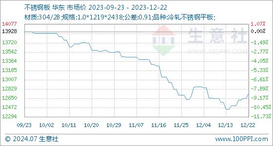 12月22日生意社不锈钢板基准价为12650.00元/吨