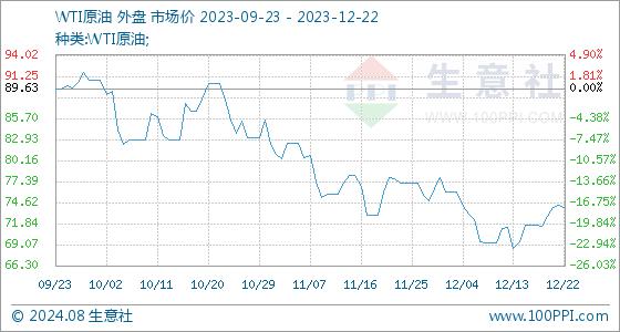 12月22日生意社WTI原油基准价为74.22美元/桶