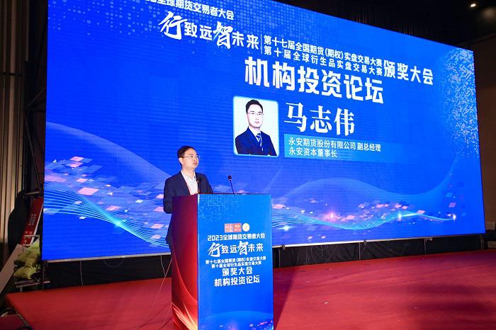 期货日报网讯(资深记者韩乐)12月23日,2023全球期货交易者大会暨第十七届全国期货(期权)实盘交易大赛、第十届全球衍生品实盘交易大赛颁奖大会在重庆举办。在下午的机构交易者论坛上,永安期货股份有限公司副总经理、永安资本董事长马志伟在致辞中表示,永安与期货行业共成长,始终秉持着“客户利益至上,一切为了客户”的服务理念,在公司“十二五”和“十三五”规划的引领下,永安期货已经实现了从“传统期货经纪公司”到“衍生品综合服务商”的飞跃,“十四五”期间,开启了打造“衍生品投行”的新征程。