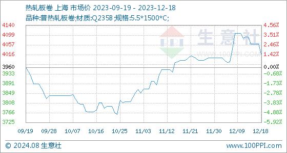 12月18日生意社热轧板卷基准价为4060.00元/吨
