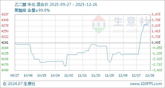 12月26日生意社乙二醇基准价为4296.67元/吨