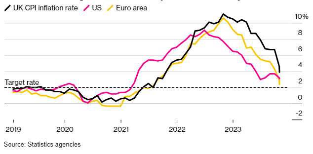 除此之外,英国也面临着大选问题,经济疲弱可能会令英国首相苏纳克所在的执政党保守党赢得大选的前景黯淡。