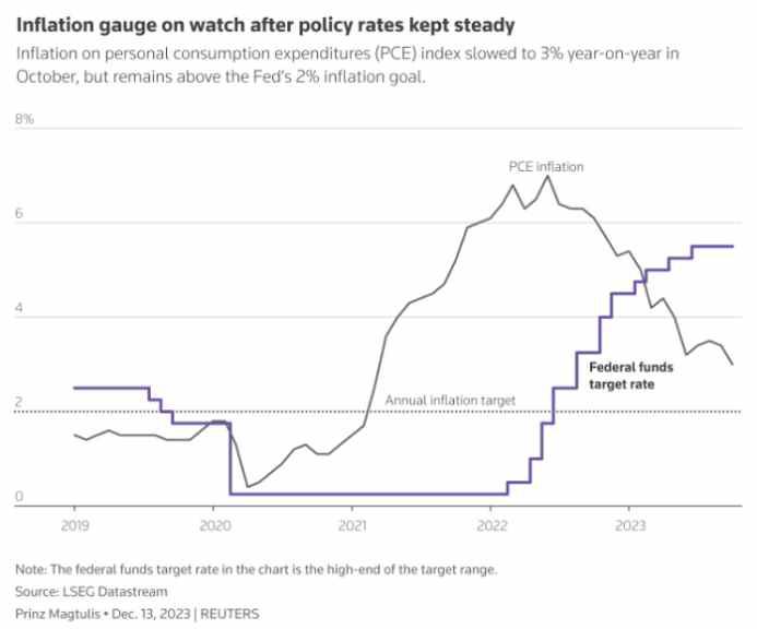 作为全球最重要的央行,全年保持鹰派的美联储却在12月的最后一次会议释放了鸽派信号。这令市场感到意外,叠加PCE进一步降温,市场不断加大美联储降息押注。