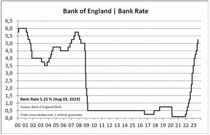 英国央行今年累计加息175个基点。在连续加息14次后,于9月首次暂停加息,并在之后延续暂停加息的政策至12月。