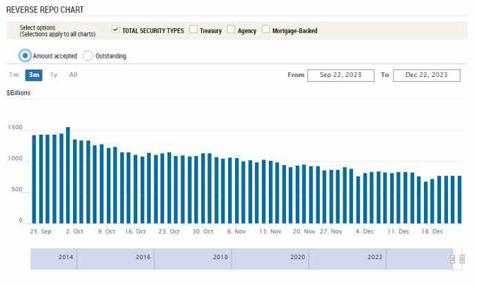 不过,作为美联储利率控制工具的重要组成部分,逆回购今年迅速下降,从去年12月超过2.5万亿美元的峰值降至目前的不到8000亿美元左右。逆回购一直在快速收缩,这也让人怀疑这是否意味着比预期更早停止量化紧缩政策,或者市场和官员是否需要重新调整他们的预期。