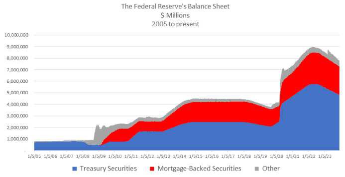 自2022年6月以来,美联储已削减了近1.2万亿美元的美国国债和抵押贷款支持证券。美联储官员曾多次表示,减持将需要相当长的时间,因为他们试图从金融系统中提取足够的流动性,以保持对短期利率的牢牢控制。
