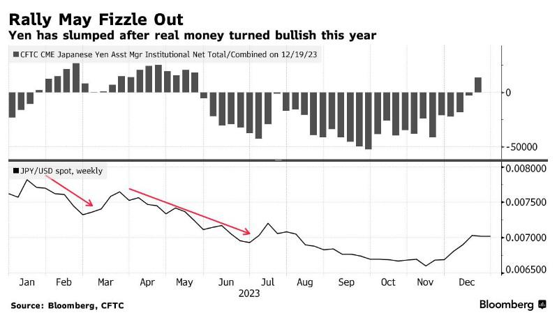 Bechtel称,根据美国商品期货交易委员会(Commodity Futures Trading Commission)截至12月19日当周的报告,资产经理们自5月以来首次将日元从空头转为净多头。