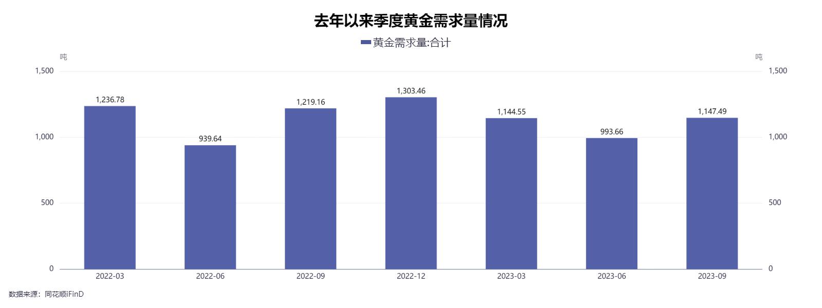 数据显示,应对纷繁复杂的经济和地缘政治局势,全球央行在2022年以1136吨的净购金量创下历史记录。而在2023年前三季度,全球央行净购黄金已达800吨,创下了世界黄金协会有该项数据统计以来的最新纪录。