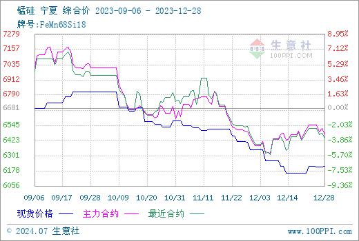 阴霾笼罩的12月,硅锰行情低迷继续。12月硅锰招标定价下跌,厂家亏损加剧,生产积极性较低,库存仍有待消耗,高价较难成,市场信心不足。据生意社商品行情分析系统,硅锰宁夏地区(规格为FeMN68Si18)12月28日市场报价在6150-6250元/吨附近,市场均价6215元/吨,较月初降2.10%。