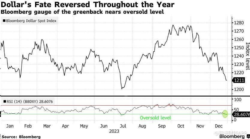 美元的大部分跌幅发在在第四季度,因为越来越多的人押注美联储明年将随着美国经济放缓而大幅放松政策。这削弱了美元的吸引力,因为其他央行可能会在更长时间内保持较高的利率。