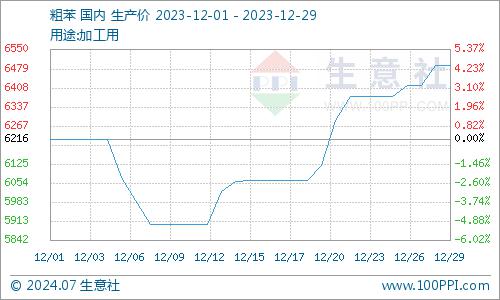 生意社:2023年12月原油提振粗苯月涨4.42%