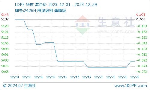 据生意社商品行情分析系统监测,LDPE(2426H)12月1日国内价格在9137元/吨,12月29日均价在9082元/吨,期间报价下跌幅度0.60。