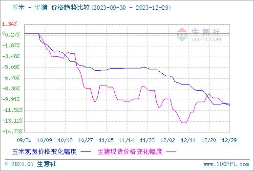 据生意社商品行情分析系统,12月份国内外三元生猪价格整体弱势低位震荡前行,12月1日均价14.55元/公斤,12月29日均价14.42元/公斤,月内下跌0.89%。