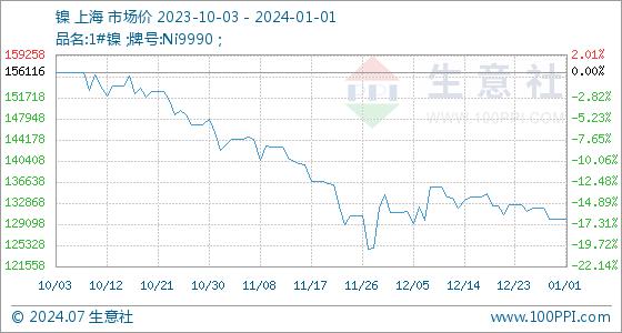 1月1日生意社镍基准价为130033.33元/吨