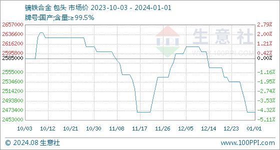 1月1日生意社镝铁合金基准价为2470000.00元/吨