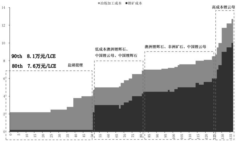 图为2024年锂资源成本曲线(折合LCE)(不含回收)