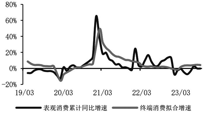 自上而下展望今年消费,国内仍延续经济修复主基调,宏观去库存周期临近尾声,有望转入补库存周期,海外则仍有部分压力。半导体电子终端领域去年已有企稳回升迹象,今年低基数效应下增速有望转正,贡献约达1%。此外,在家电领域,我们认为增速将下降,但不宜过分悲观。在新动能领域,新能源汽车有望保持高景气,光伏目前不过分悲观,组件去库存压力不大,汽车光伏合计贡献约2%。基于消纳问题,我们对国内光伏装机量的预期较之前有所下降,至15%左右,海外预期20%。