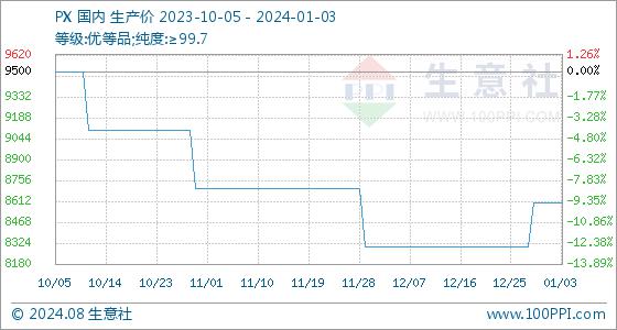 1月3日,生意社PX基准价为8600.00元/吨,与本月初持平。