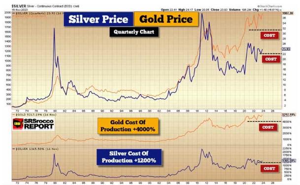 大多数AISC模型都没有捕捉到用于勘探和开发的所有资本流失。在第一把铲子破土动工之前,会有巨大的成本。在许多项目中,白银的生产成本现在超过每盎司24美元。由于劳动力和柴油价格的上涨,这一价格将继续上涨。这并没有捕捉到陷入困境的风险,墨西哥最有可能最大化金砖国家在货币上吞噬白银,而北约在工业上吞噬白银的事实。墨西哥正处于这场地缘政治拉锯战的中心,它将想出创造性的方法来提高“开采”成本。此外,预计这些盛产银矿的地区会发生罢工。
